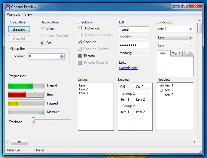 - And of course, the beautiful theme elements from Windows 7! Preview of common controls used in Windows