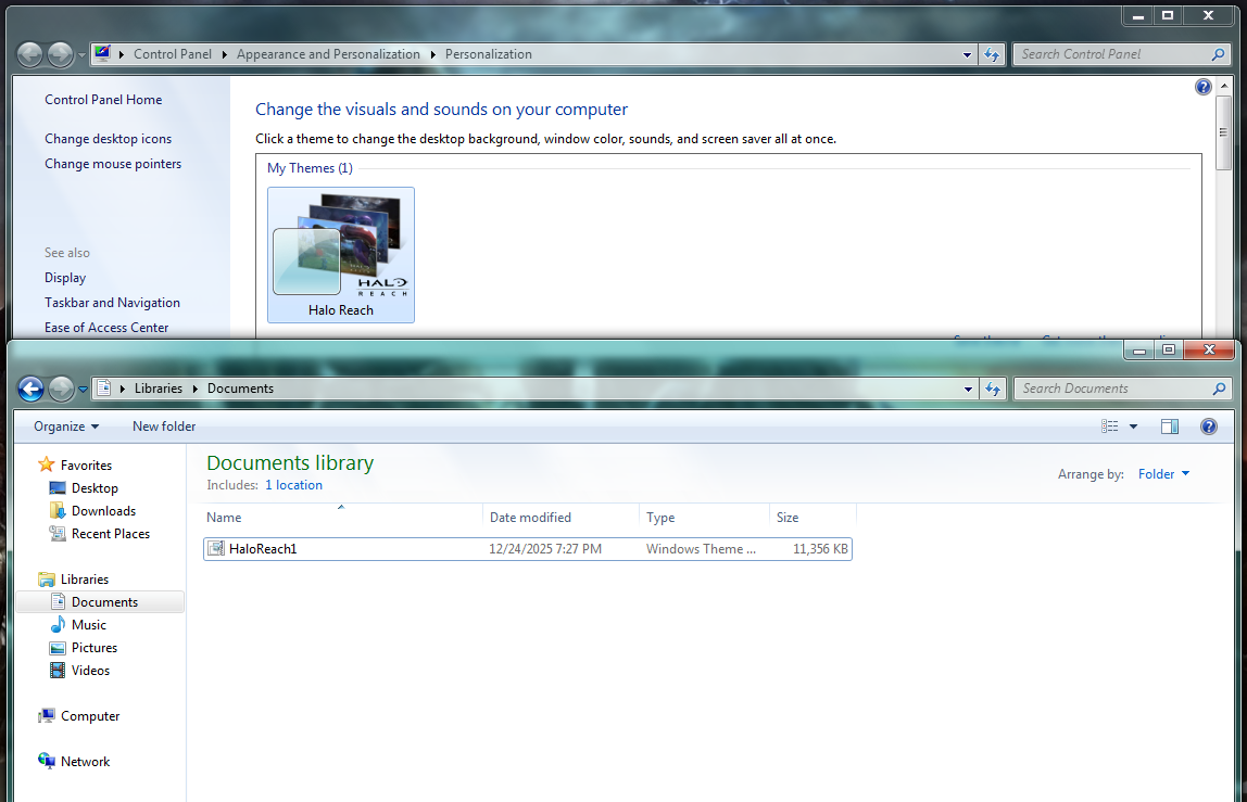- Support for .themepack files from Windows 7! Preview of .themepack files working